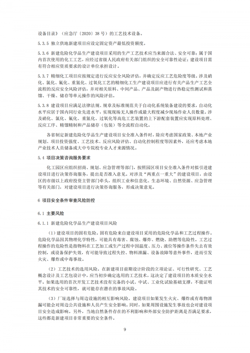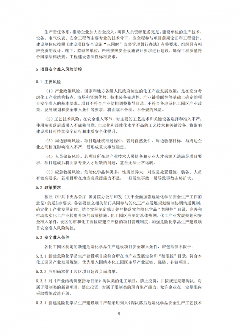 一是突出项目准入要求。针对一些地区只顾发展不顾安全,对危险化学品生产建设项目不设门槛的问题,从产业规划、国家政策、地方要求、项目投资、工艺技术、反应风险评估、自动化控制程度等方面提出项目准入条件要求,指导地方解决“怎么选择项目、什么项目能落地”的问题。
