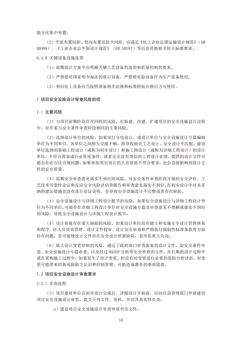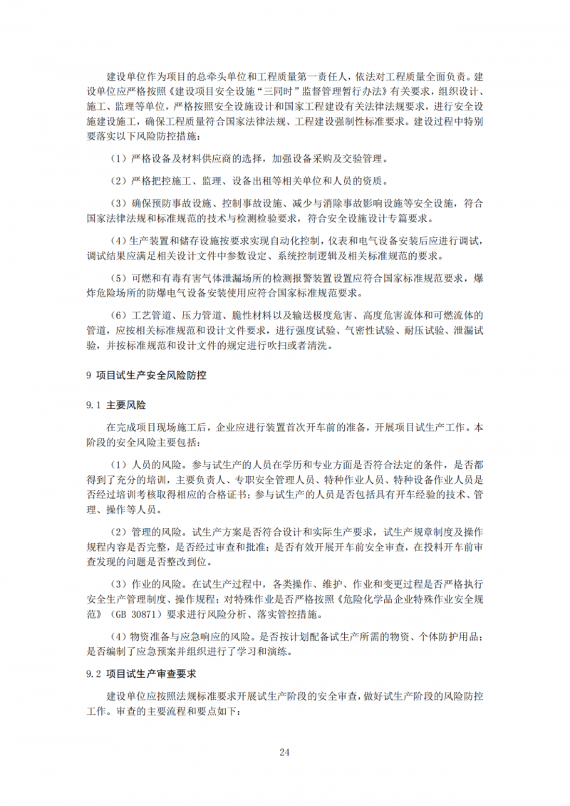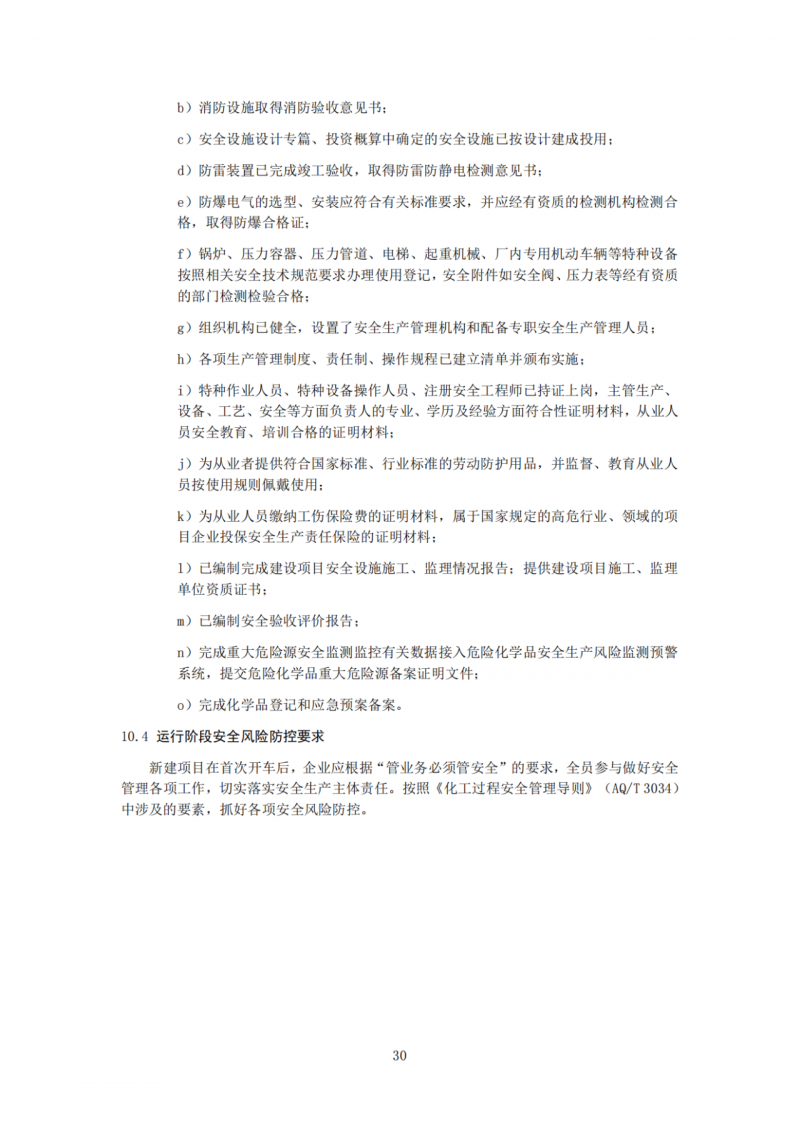 规定了新建项目运行阶段,企业要按照《化工过程安全管理导则》中涉及的要素,抓好各项安全风险防控。