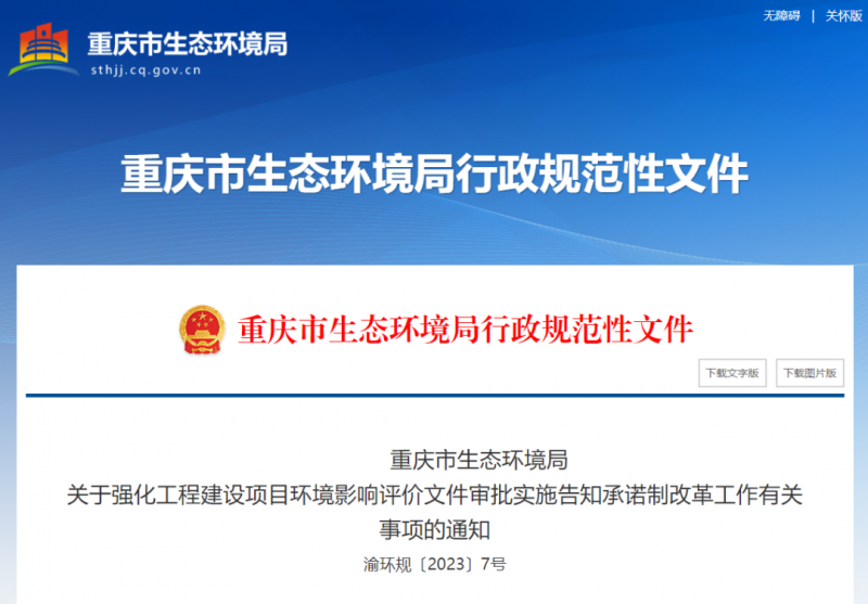 最新发布《重庆市实施环境影响评价文件审批告知承诺制建设项目名录(2023年修订)》2024年1月31日起施行