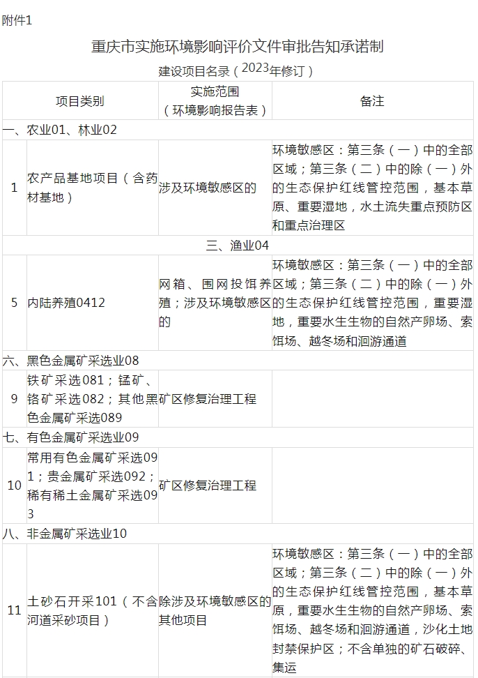 附件:1.重庆市实施环境影响评价文件审批告知承诺制建设