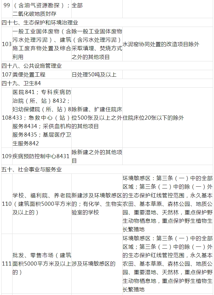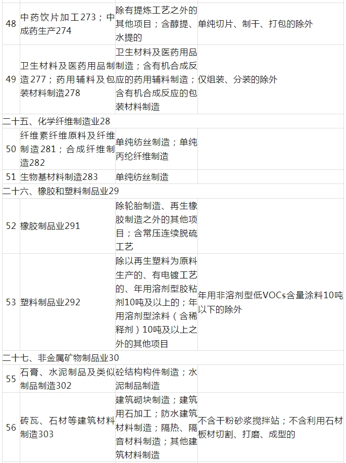 注:1.本名录中序号与《建设项目环境影响评价分类管理目录》(2021年版)中序号一一对应。